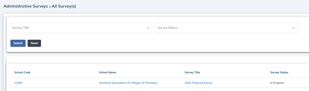 AACP sends an e-mail to the survey administrator and school users assigned to the survey(s) when the survey administration period opens. At least one reminder e-mail of the survey is sent before the closing date. It is the responsibility of the college/school to complete the survey and download a copy.